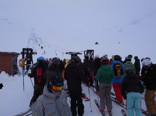 僕の後ろにいたオーストラリアの女性は初めてのフレッシュトラック。「これって、食べてから滑るの?それとも滑ってから食べるの?」って聞いてきた。「友達から誘われて、時間通りに来たのに、友達は勝手にずっと前の方に並んじゃっているの」って困っていた。“パウダーの日には友達はいない”と普段から言われているが、まさにその通りの行動。