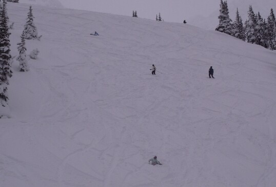 しかしながら、強風とあまりの降雪のために、ゲレンデ内のなんでもないような所でも雪崩発生。天気が落ち着き、ゲレンデ内のチェックが終わるまで、ウィスラー山もブラックコム山もクローズドされた。