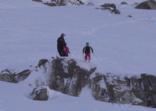 リフトの目の前の急斜面にはお約束のビッグライン。そしてやはりお約束のクリフジャンプ。