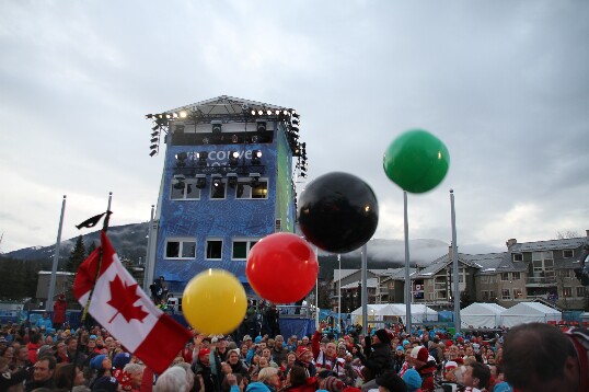メダルセレモニーでは大きな五輪カラーのバルーンも飛び交いカナダの国旗もお決まりのように沢山振られていた。
