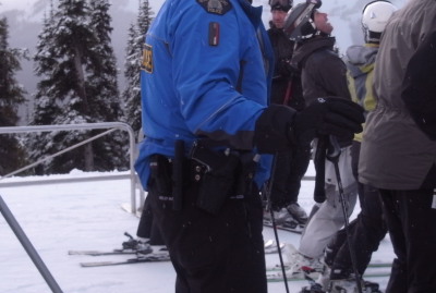 なんかこの仕事はいいよねえ。腰には拳銃などがぶら下がっているが、せめてウエアの下にあったほうがいいような気もするがどうだろう???