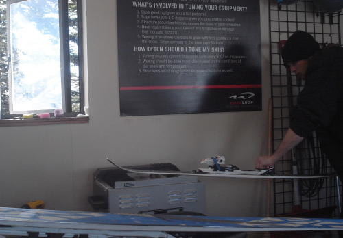 その場でサイドエッジをマシーンがけしてくれて、ベースワックスをぬってくれて$15なり。