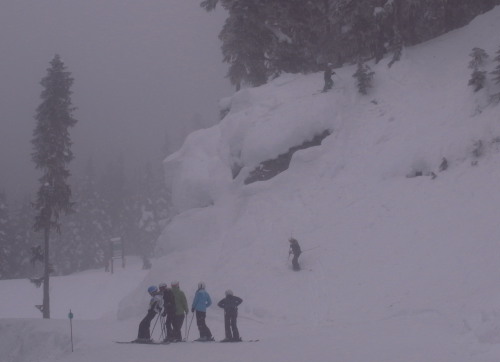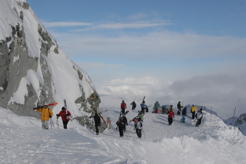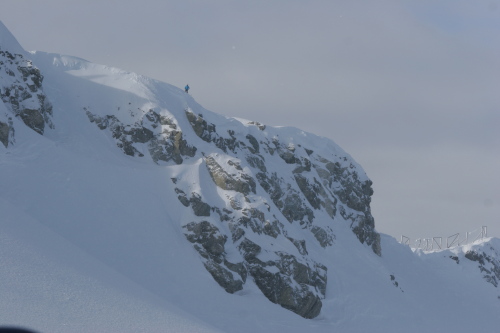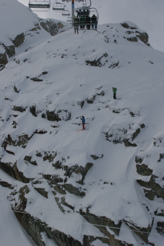 ピークチェアーエリアでは大勢の人たちがクリフジャンプをしていた模様。
