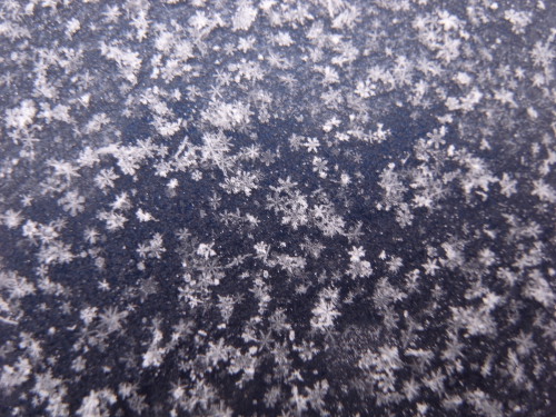 これは今朝8時過ぎ、駐車場の車の窓に積もっていた雪。