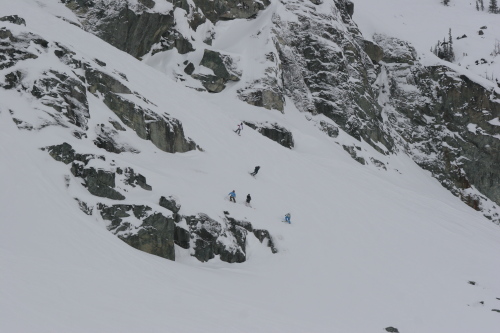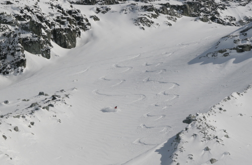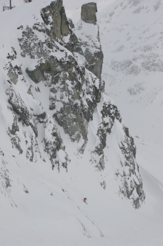 結構スティープで、あまり知られていない隠れ家的なエリア。しかし積雪量が充分ないとちょっと危険なエリア。