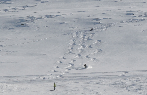 このところビレッジまでいい感じで雪が降っているので、P2PGの架線下を滑る人も増えているようだ。