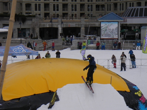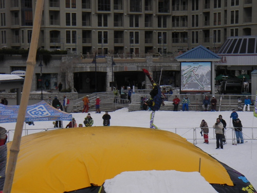 先日、スキーヤーズ・プラザで、エアマットに飛んでいくビッグエアー(?)が行われていた。