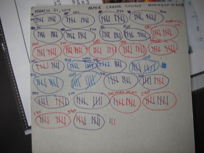 僕も寄付をして折り鶴を折った。そしてカウント表に一本線が足された。