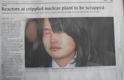 3月31日のカナダ全国紙には、避難所で迎えねばならなかった卒業式で涙ぐむ生徒の写真が載っていた。