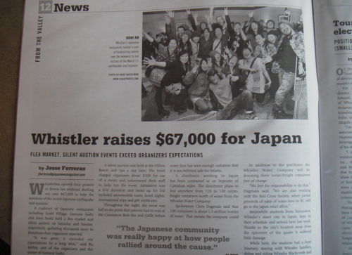 ところで、先週末2日間で行われた日本救済のファンドライジングイベントで$67,000カナダドルが集まったと新聞に記事が載った。