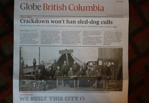 今日のカナダ全国紙のBC地方版は、テントではじめた市役所の写真がトップだった。