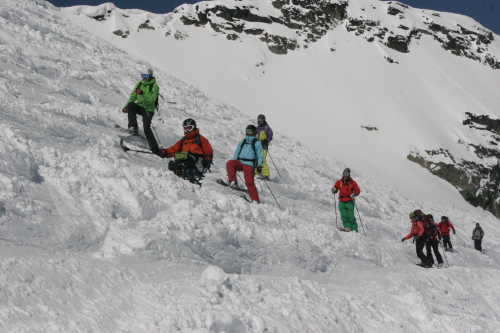 山の上は結構いい感じの新雪だったが、そこはやはり春の雪。雪崩のデブリなどが新雪の下に隠れていてなかなかややこしい。