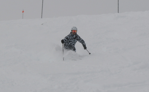 当日は視界が良くないときもあったが、8cmの新雪に見舞われ、とても良いコンディションで半日のレッスンを楽しませていただきました。