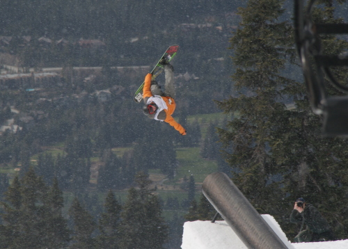 会場のところにかかっているキャットスキナーチェアーから見ていると、選手はリフトのはるか上を飛んでいく。かなりヤバイです。