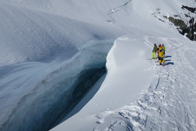 普段は全くできてない場所にできたクレバスだし、いつものように大雪が降ったらこんなクレバスもすぐに埋まってしまう。