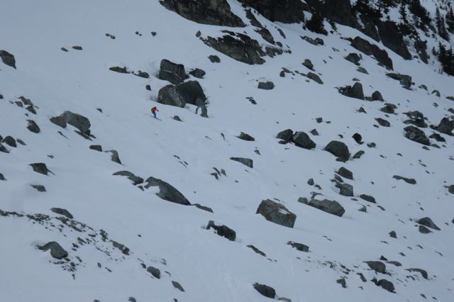 そしてフルートボウルへはハイクアップ。このエリアはいわばゲレンデ内のバックカントリー、非圧雪コース。