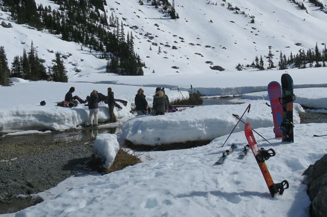 例年なら雪の下の埋まっているブラッコム氷河のクリークも今年はオープンしているので、そこでのんびりピクニックをしている人たちもいて、色々な過ごし方があるなあって思う。