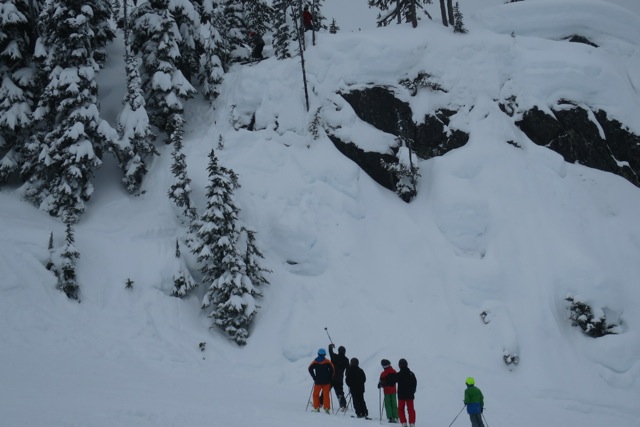 さて、今シーズンのゲレンデの一押しはブラッコム氷河のHUSUMIシュート下部にできたケイブ。