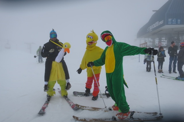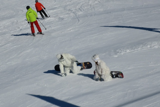 ゲレンデには春らしく、リスや雪男雪女?ゴジラ?ダチョウ?
