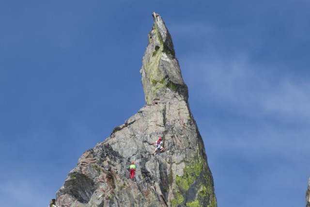 ブラッコム氷河では、通称モアイ岩でクライミングを行っている人を見つけた。