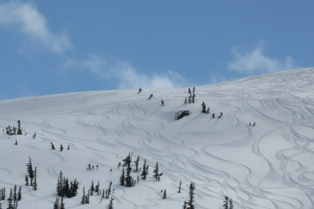 ウィスラー山最終日には、多分80歳ぐらいだろうか、おじいちゃんとおばあちゃんのグループが「フルートにバックカントリーにいく」とグループで出かけて行った。