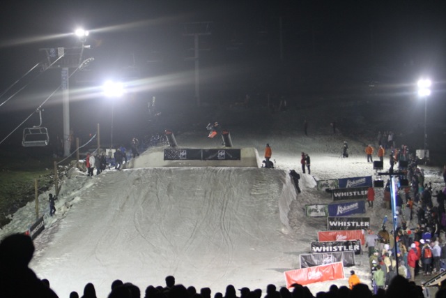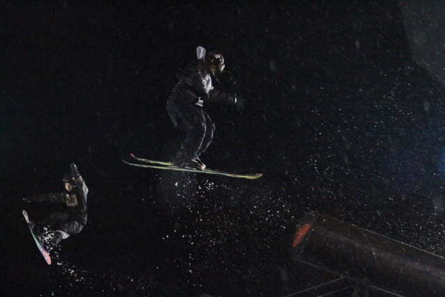 これはスキーヤーとボーダーがチームを組んで,同時にキャノンをスライディングしてきてトリックを決めるというもの、二人の合計特得点がチームの得点になる。