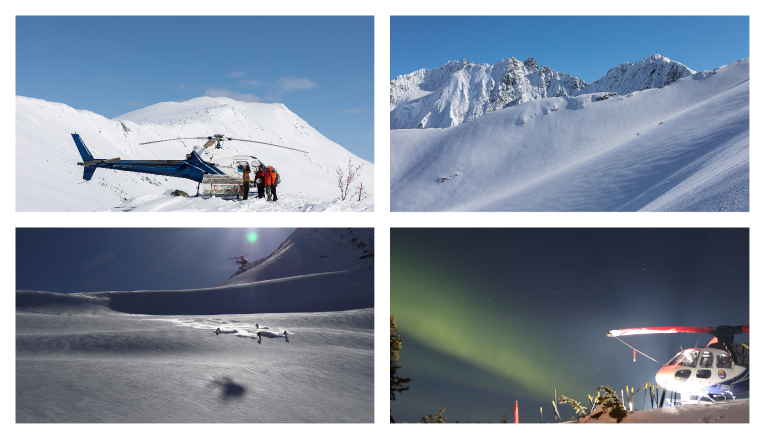 BC州北部の内陸寄りに位置するヘリスキー会社。滑走可能なエリアの面積は9,525平方キロメートルと広大だが、常駐するヘリはわずか2機。夏はフィッシングのベースとして営業しているロッジに滞在する他に、ヘリイン/アウトのキャンプ泊で楽しめるパッケージもある。